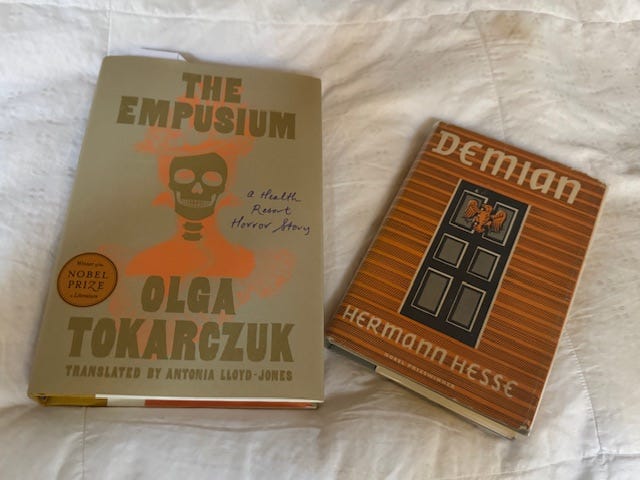 Today I finished a difficult section of my book. I believe I will make my deadline of January 2, so I am quite happy. I have a few different books to choose reading. One I read some time ago, Damien by Herman Hesse and the other recommended to me by my cousin Anthony (who has impeccable taste) called The Empusium by Olga Tokarczuc. Two great possibilities.
