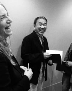 Then in the fall of 2014 I was asked by a German newspaper to fly to Berlin to present Murakami with the Die Welt Literature Prize, and sing him a song. Now, it isn’t every day that one just up and flies across the ocean to hand a stranger an award. But to meet a beloved writer (who is actually alive) to say nothing of the opportunity to ask him what happened to the bird sculpture was too good to pass up. So, I packed my little suitcase and flew to Berlin.