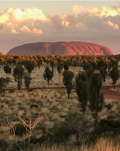 Those photos, Patti. Magnificent. The trees in the foreground of the Ulluru photo look like beings coming to assembly, in the thrall of nature, beguiled by its beauty, honouring its majesty.