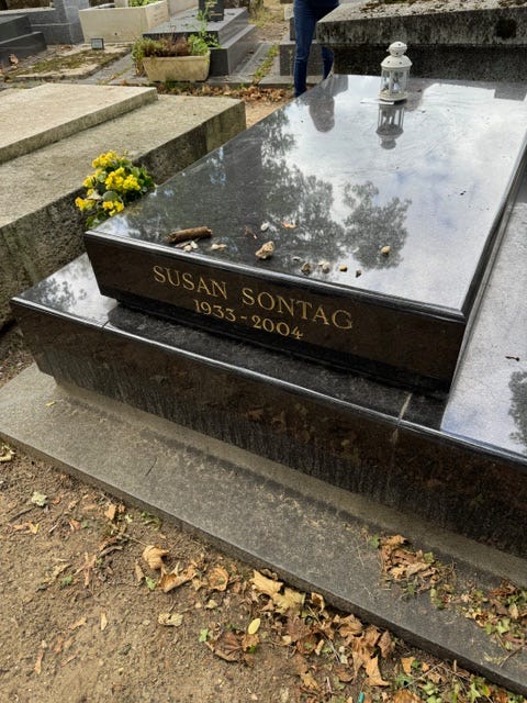 Playback speed×Share postShare post at current timeShare from 0:000:00/0:00Transcript71811035Sleepily remembering Susan Susan Sontag's birthdayPatti SmithJan 17, 202671811035ShareTranscriptBe good have good dreams….Broch Sontag BernhardCemetery This Substack is reader-supported. To receive new posts and support the work, consider becoming a free or paid subscriber.SubscribeDiscussion about this videoCommentsRestacksPatti SmithThe reader is my notebookThe reader is my notebookSubscribeListen onSubstack AppRSS FeedAppears in episodePatti SmithRecent EpisodesNatural lightJan 12 • Patti SmithBOA 2Jan 7 • Patti SmithRebel Hump Jan 3 • Patti SmithTime for QuestionsJan 2 • Patti SmithA message for my SubscribersJan 1 • Patti SmithA little reading a little musicJan 1 • Patti SmithSaying hello Dec 30, 2025 • Patti Smith
