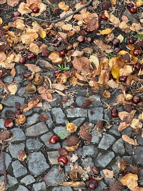 I found the chestnut tree, and a few red squirrels scurrying about. I saved a chestnut that fell by my feet and said farewell. I am resting before our concert tonight, which will open with Peaceable Kingdom. Good wishes to everyone.