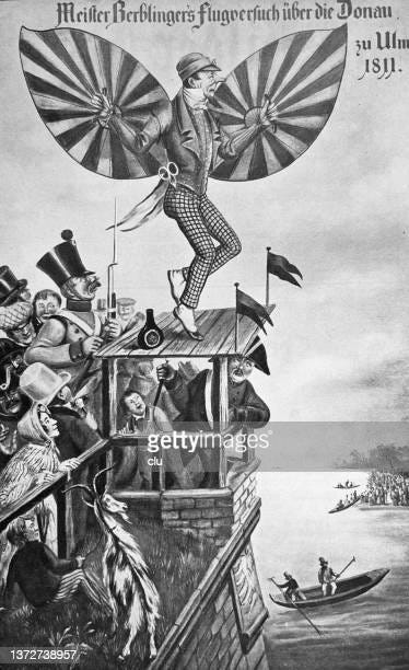 Albrecht Ludwig Berblinger was born in Elm today June 24, 1770. On May 31, 1811 he undertook a spectacular attempt to fly from the Adlerbastei in Ulm with his self-built flying machine. However, the attempt sadly failed and Berblinger plunged into the Danube, due to unfavorable wind conditions. Albrecht Ludwig Berblinger had the heart of an inventor - he invented a working prosthetic leg for humans and made a significant contribution to the pioneering of aviation. The tailor of Ulm, who dreamed that man could fly, was a true visionary.