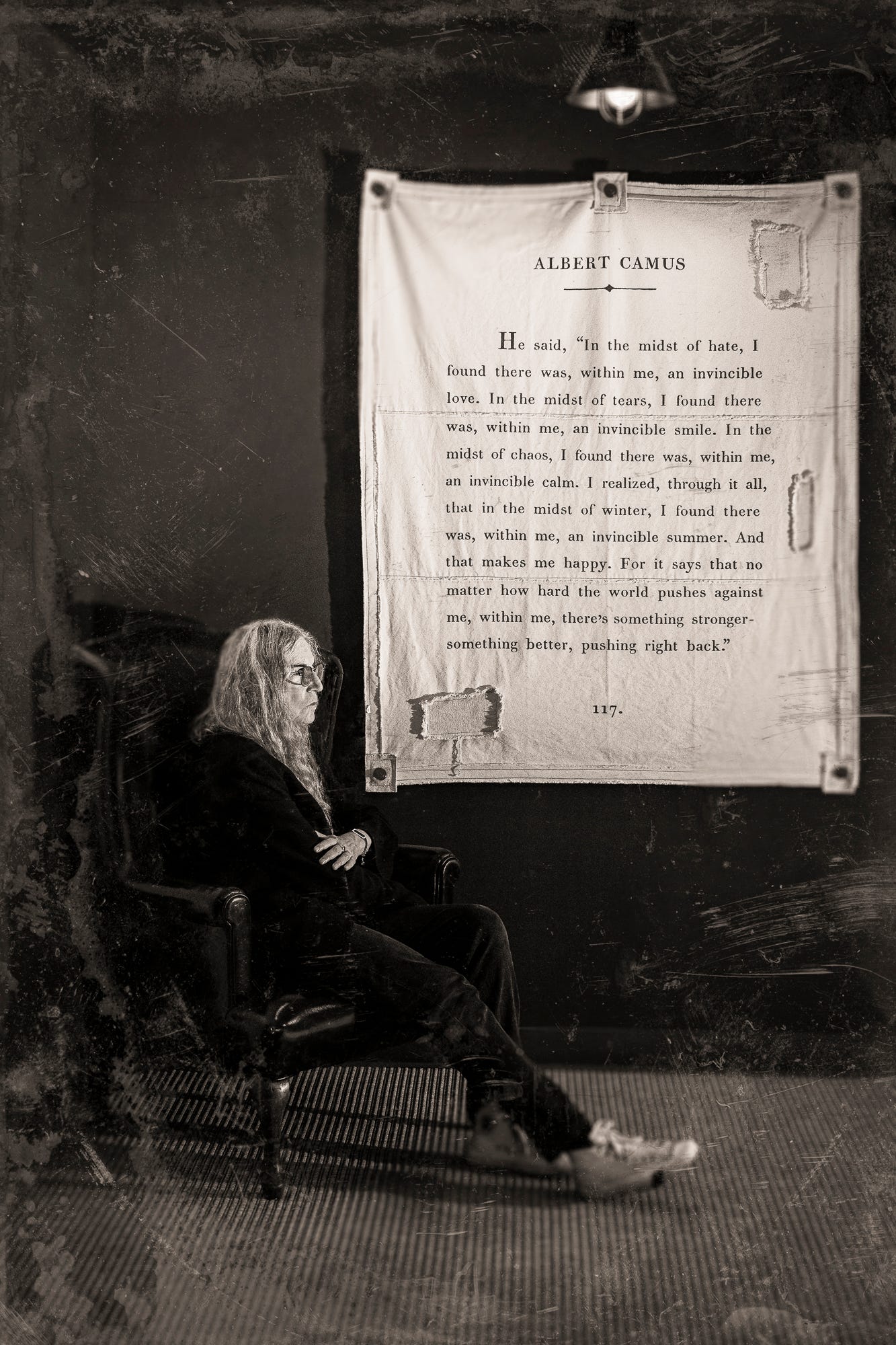 words that uplift , recenter the spirit - particularly needed at this time - being confronted by it in the hallway of the hotel with patti and being able to make an image containing Camu's words that has her in the frame which can then be shared with all of you - makes photography purposeful for me - I hope his message spreads .....
