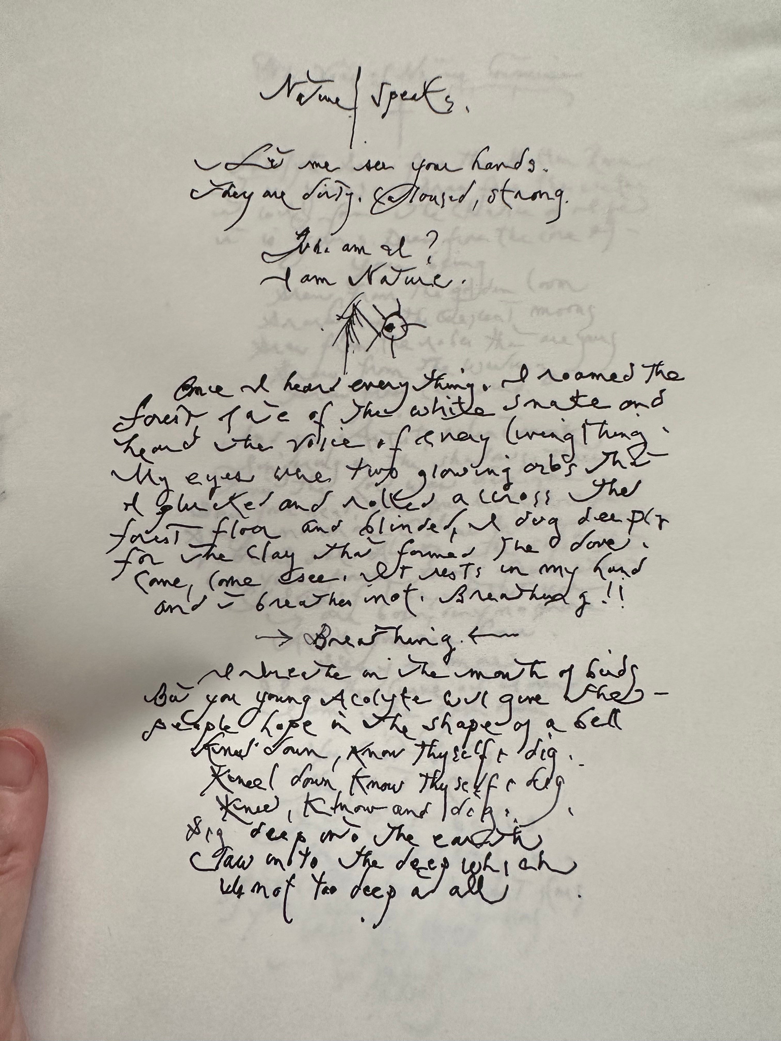My dream was to write like the authors of the Declaration of Independence and I copied it line by line at separate intervals of my life. I mentioned this in a piece called Drawing in my book Woolgathering. So today I will read a fragment of it, and crosspost Jesse’s wonderful meditation on the miracle of handwriting.